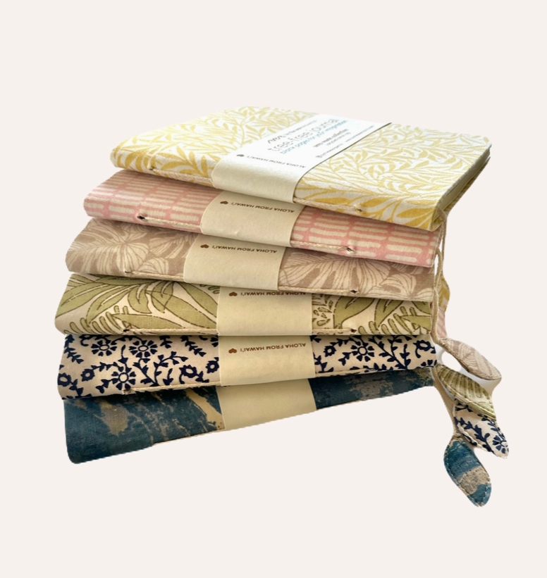 Pretty fabric covered journals are just right for gathering your daily thoughts and sketches.