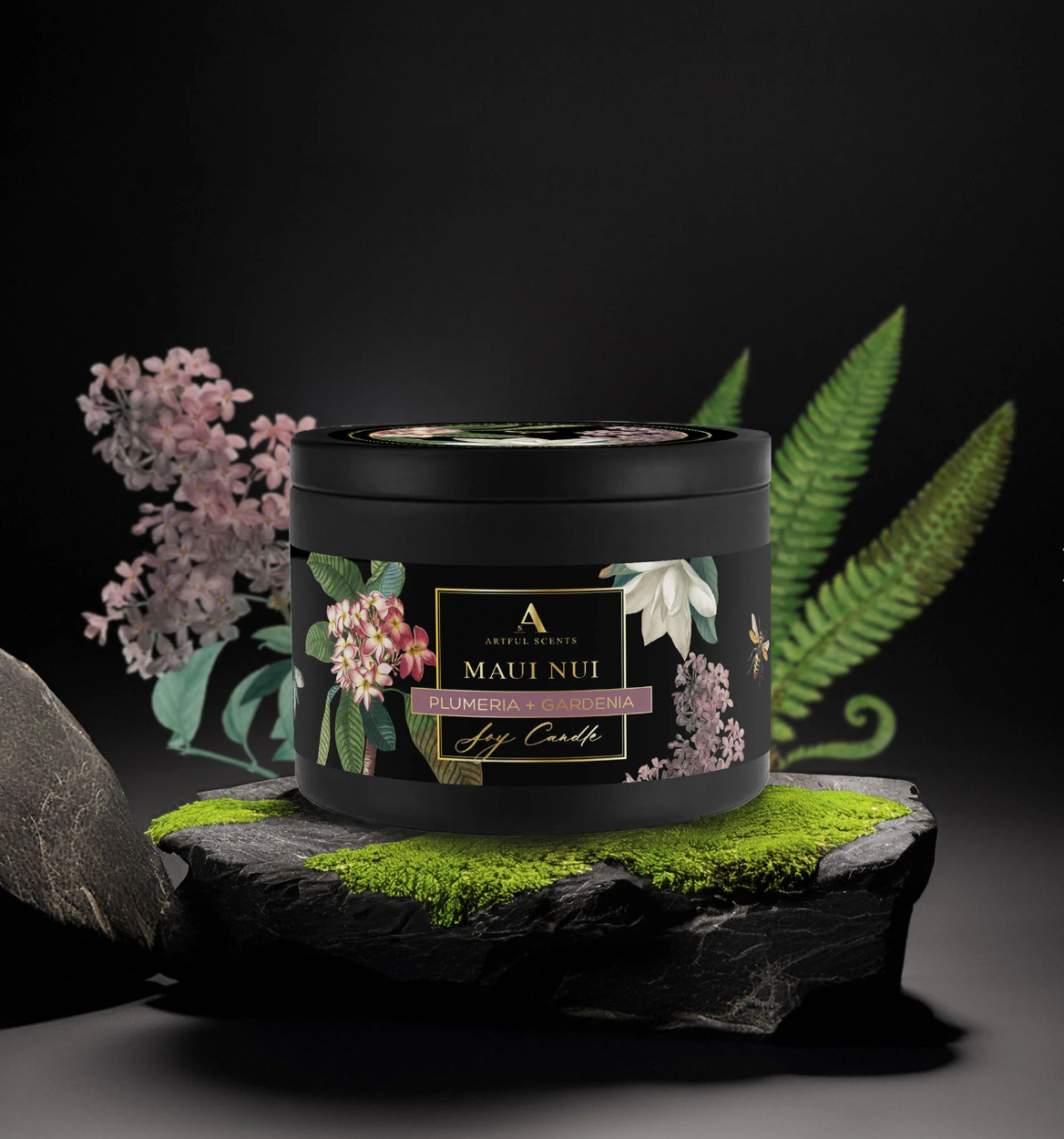 Made in Maui, Hawaii with 100% soy for an eco-friendly, clean burn. Designed by artist Jennifer J Stephens.