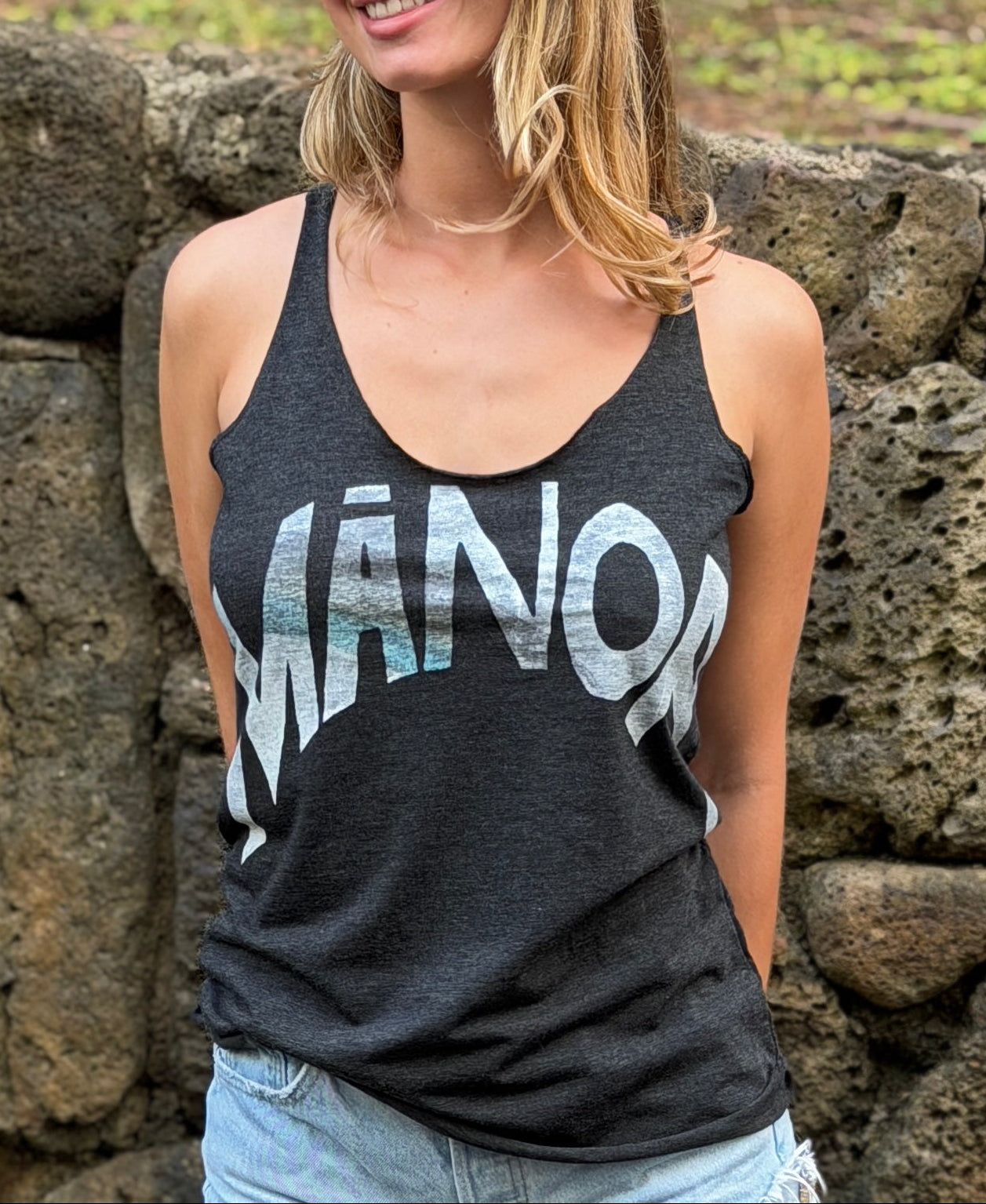 The Manoa Grey Tank is a relaxed tank top with a hand-printed design. Light, easy to wear, and made for wherever the day takes you.
