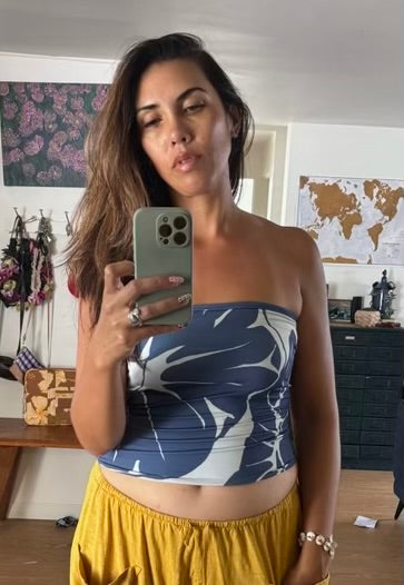 A reversible bamboo tube top that gives you two looks in one piece. Made from soft bamboo fabric for comfortable wear. The Kalo Blues print brings island-inspired style to your everyday wardrobe.